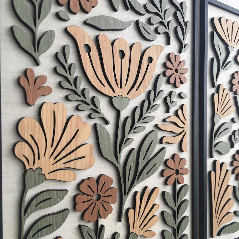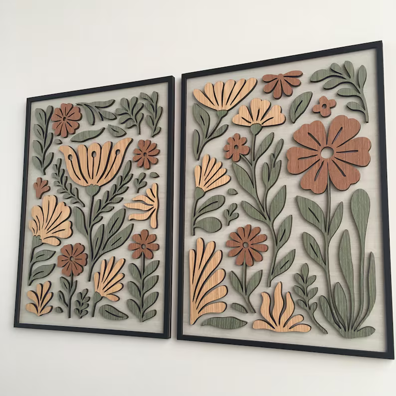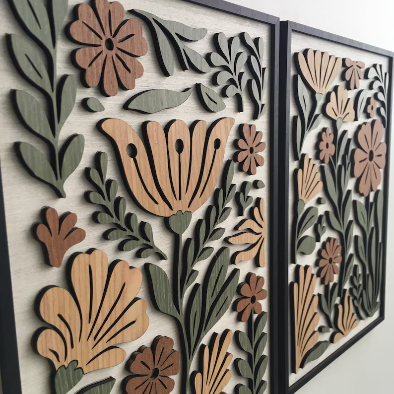 - 1 x Folk Petal Set Of 2 Wood Wall Decor